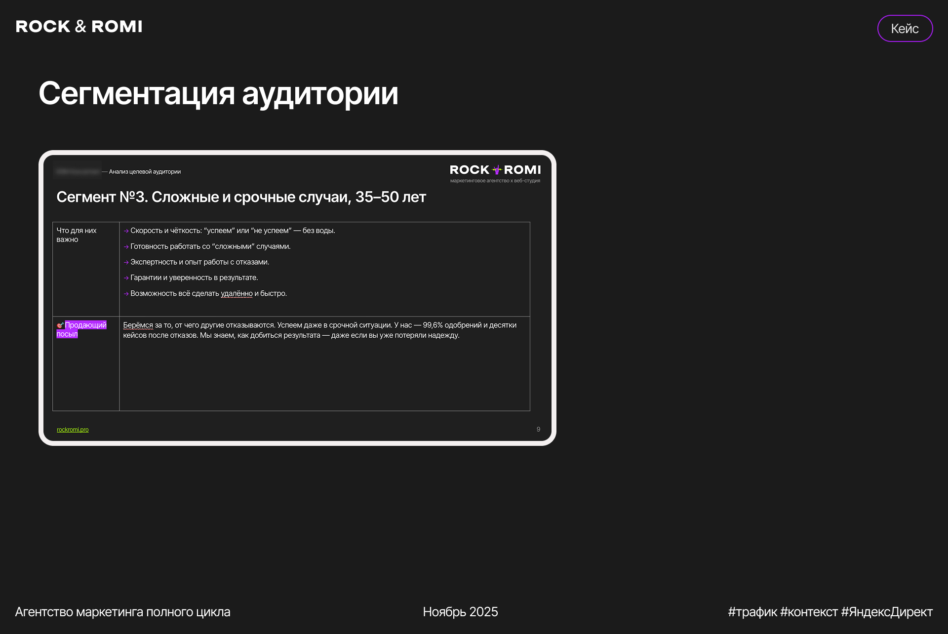 Под каждый сегмент сформировали офферы и зашили их в креативы и лендинг. Вот обобщенные смысловые выжимки: